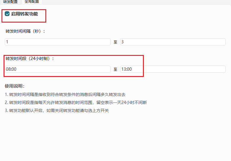 5,增加时间段转发,支持跨日期