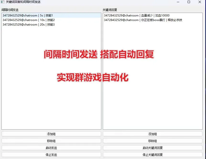 可以设置指定裙聊,关键词,自动回复内容,撤回时间,当自动回复后达到撤回时间自动撤回。 发发广告然后撤回,避免被踢的同时还能达到发广告的目的。